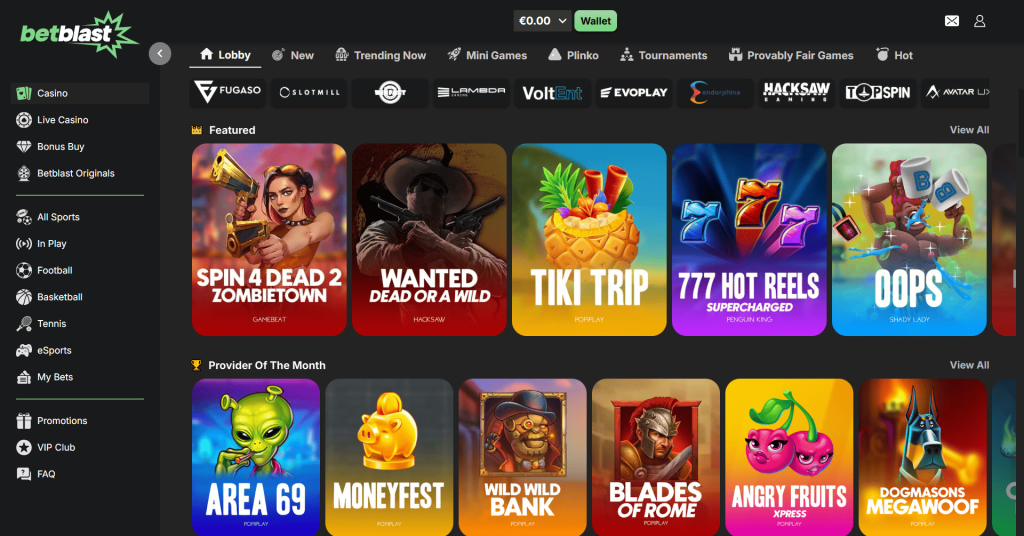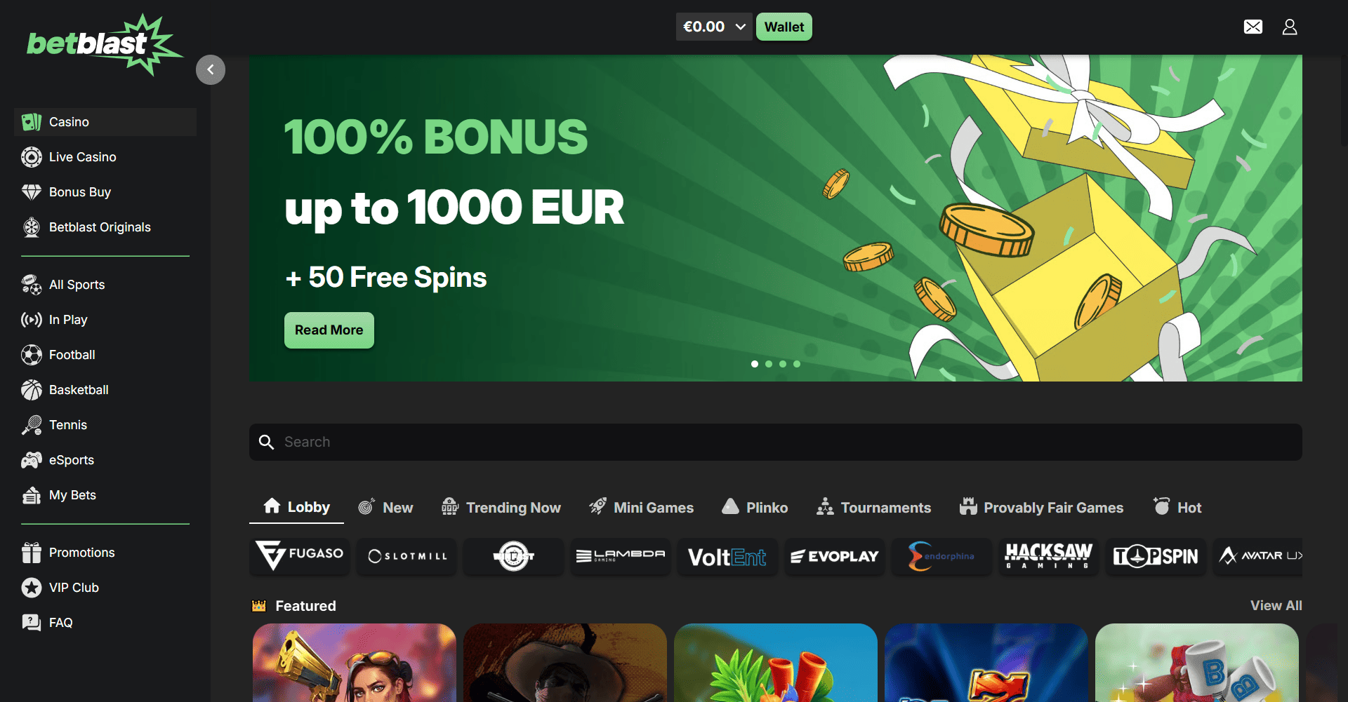 انطلق BetBlast في عام 2025، محدثاً ضجة كبيرة مثل بار جديد في الزاوية يريد الجميع تجربته مرة واحدة على الأقل. الكازينو لا يدّعي أنه خبير قديم في الصناعة – بل تم بناؤه لجمهور جديد: صديق للعملات المشفرة، عروض ترويجية سخية وفريدة، وواجهة نابضة بالحياة. مع مكتبة ضخمة من الألعاب، خيارات المراهنات الرياضية، عروض خاصة ومكافآت ترحيبية، بالإضافة إلى ألعابهم الخاصة “Originals” – عناوين حصرية لن تجدها في أي مكان آخر. باختصار، إنه ليس مجرد نسخة مملة أخرى بل كازينو له شخصية حقيقية.